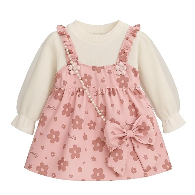 Be the first to review “Baby Girl Long Sleeve Princess Dress – Soft Cotton Round Neck Flower Dress for Toddler Girls, Birthday, Party & Casual Wear (Pink AD5)”
