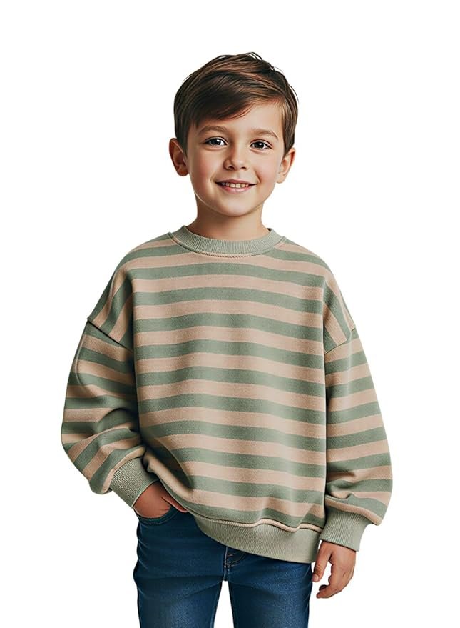 Boys & Girls Striped Oversized Sweatshirt | Age 3-10 Years | Warm & Comfortable Kids Pullover(Taupe Grey)