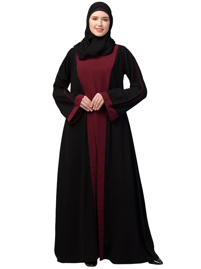 Be the first to review “Dual Layer Abaya Dress with attached Shrug and Piping On Sleeves Made in Nida Matte Fabric with Side Pocket”