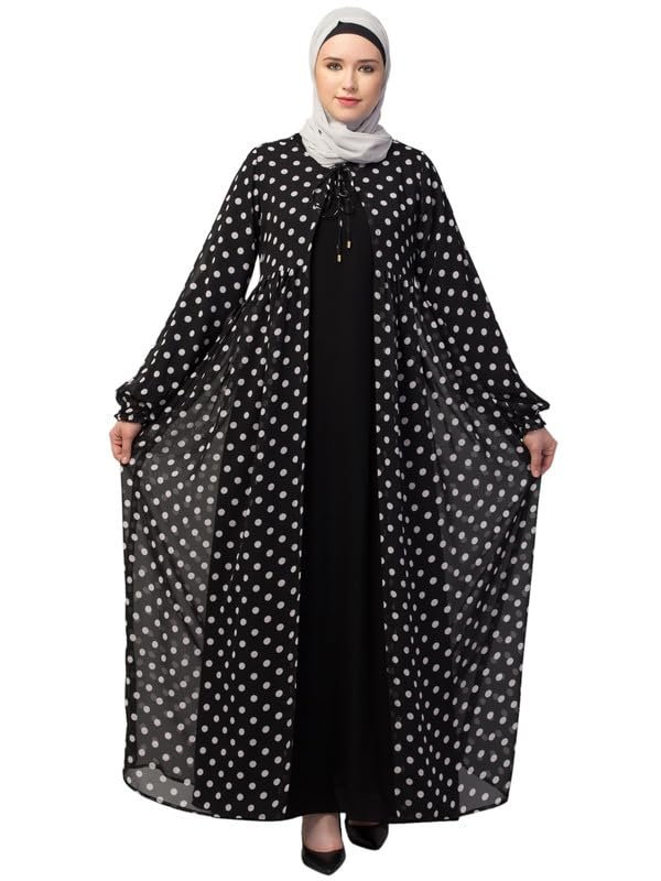 Dual Layer Abaya Dress with Detachable Shrug Made with Polka Printed Georgette and Nida Matte Fabric