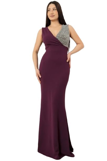Elegant Evening Gown, V-Neck Sequin Bodice, Floor Length Purple Mermaid Dress