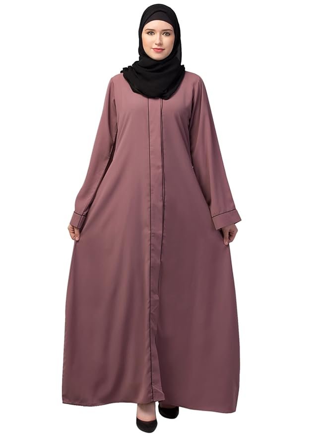 Front Open Abaya with Piping Work Made in Nida Matte fabric with Side Pockets – Front open Burqa for Ladies & Girls(Pink)