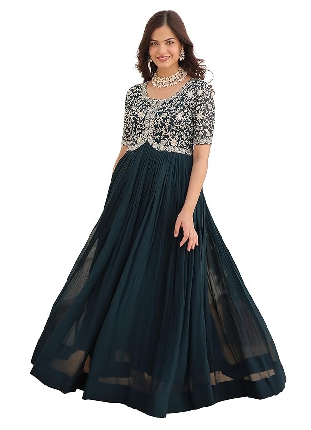 Be the first to review “Georgette Embroidered Anarkali Gown for Women(Turquoise)”