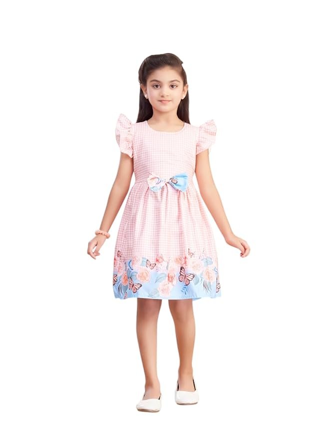 Be the first to review “Girls Casual Wear Green Color Checks Print Cotton Frock(Peach)”