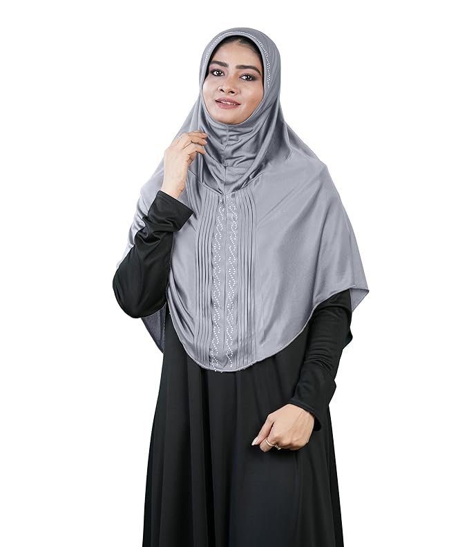 Soft Stretchable Ready-to-Wear Hijab Scarf for Muslim Women | Soft Stylish Elegant Stone Work Design (Silver)