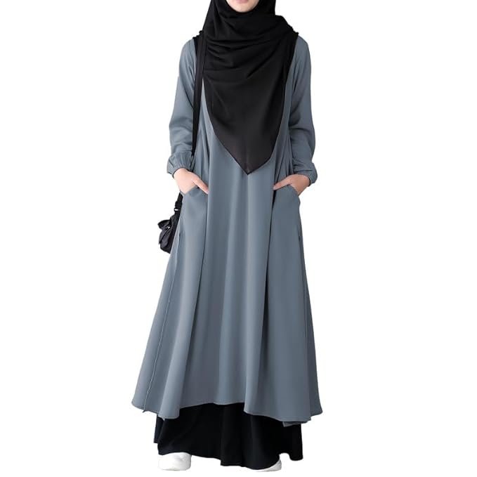 Be the first to review “Two Pieces Abaya Dress with Elasticated Sleeves made with Nida Matte Fabric – Knee length Burqa for Women and Girls(Grey)”