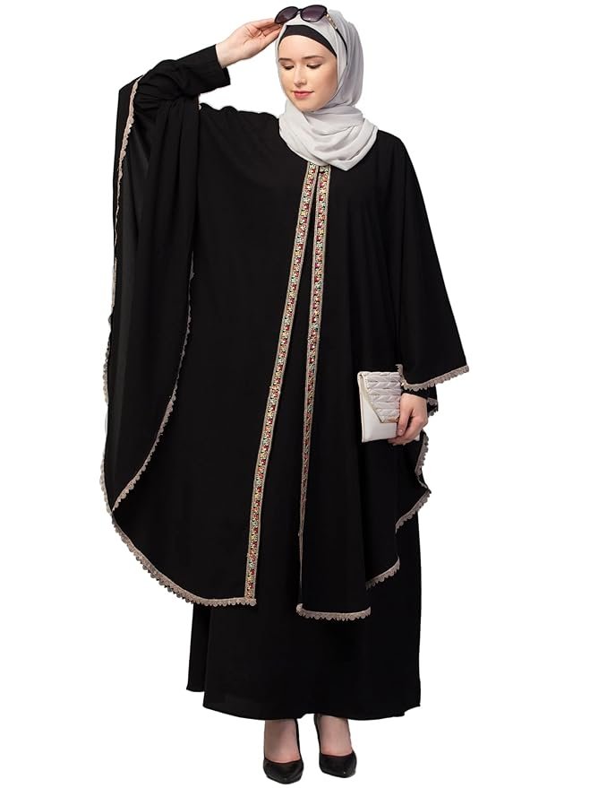 Two Pieces Cape Abaya Set | Inner Abaya with Cape with Lace Work fabric – Stylish Burqa with Cape for Women and Girls