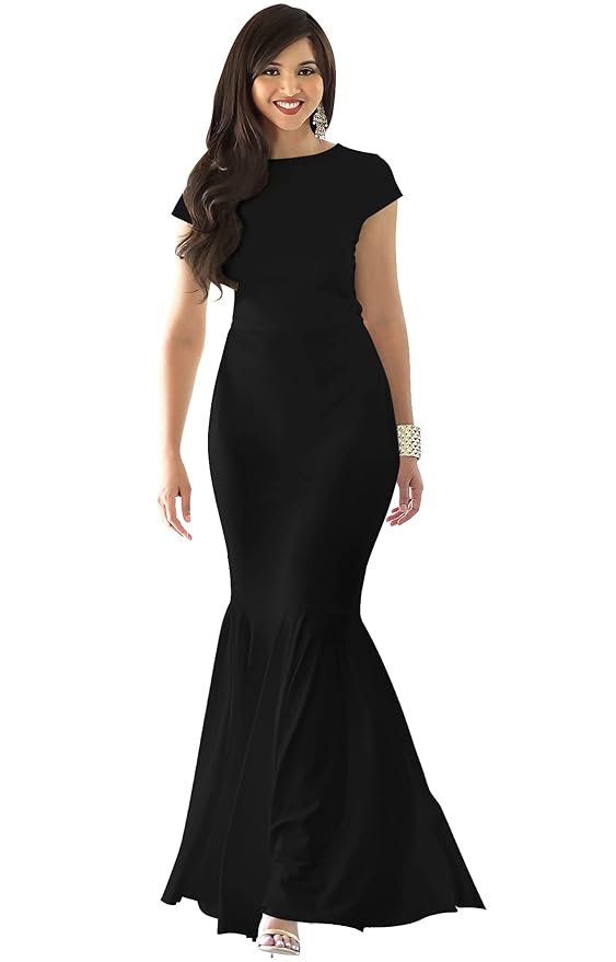 Women Long Cap Sleeve Elegant Formal Sexy Evening Cocktail Maxi Dress