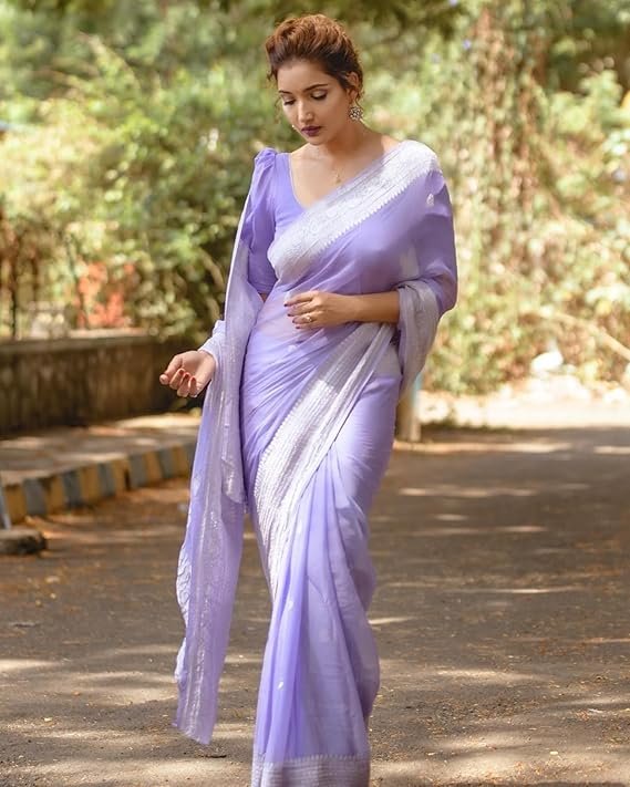Women’s Black Banarasi Kanchipuram Art Silk Saree for Women – Traditional Wedding & Party Saree with Blouse Piece – Ethnic Indian Silk Saree for Bridal, Festive & Gifting ( Lavander)