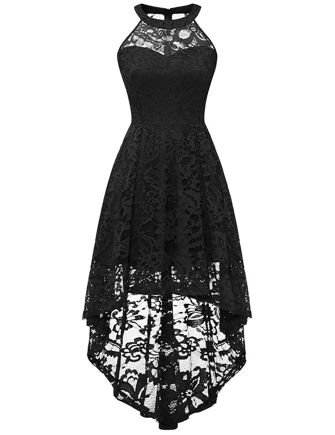 Women’s Halter Floral Lace Cocktail Party Dress Hi-Lo Bridesmaid Dress