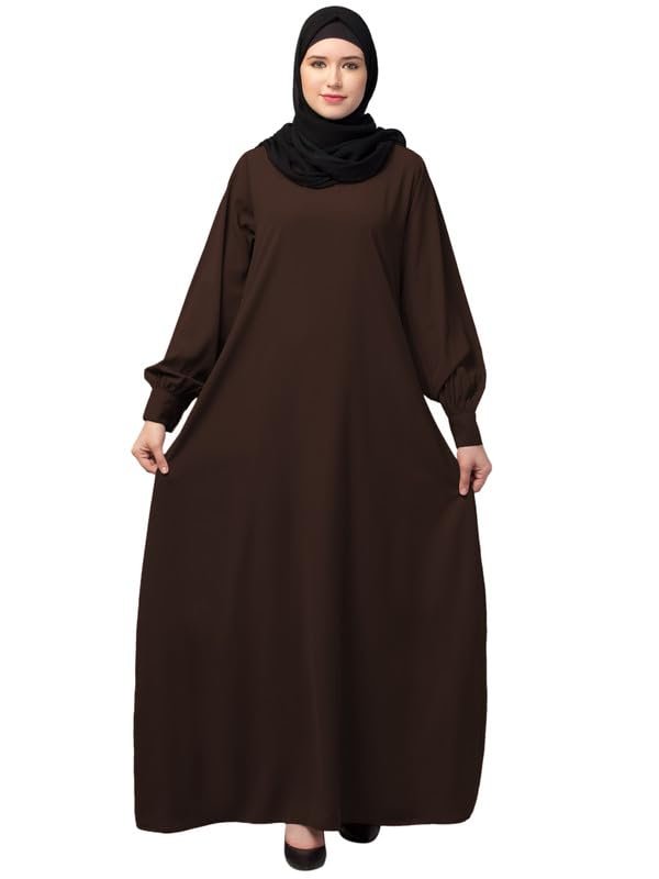 Women’s Inner Abaya Dress Made with Nida Matte Fabric with Side Pockets and Cuff Sleeves(Brown)