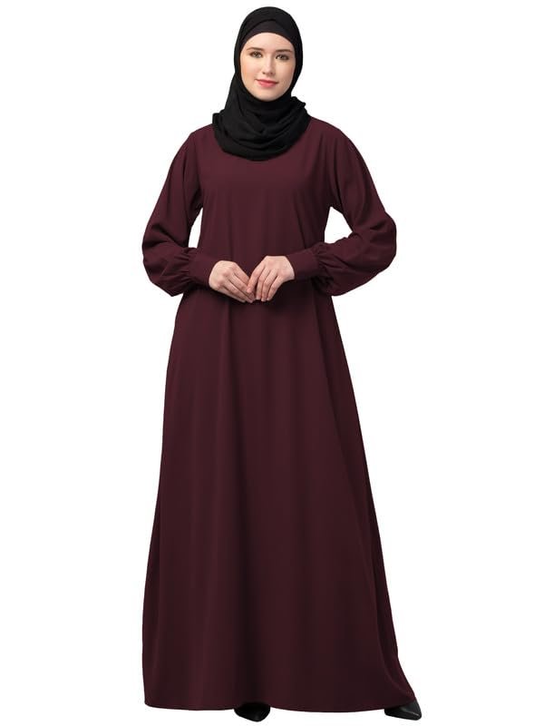 Women’s Inner Abaya Dress With Cuff Sleeves And Side Pocket Made in Nida Matte Fabric(Burgundy)