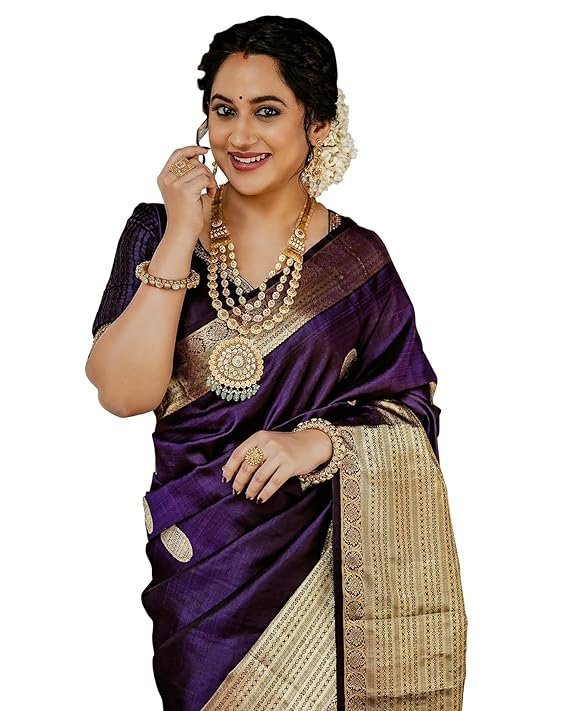 Women’s Maroon Banarasi Kanchipuram Art Silk Saree for Women – Traditional Wedding & Party Saree with Blouse Piece – Ethnic Indian Silk Saree for Bridal, Festive (Dark Purple)