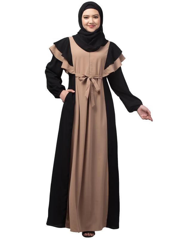 Women’s Maxi Dress With Uniquely Designed Frills On Shoulders And Attached Belt – Made with Nida Matte Fabric for Women and Girls