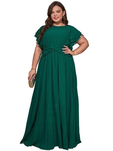 Women’s Plus Size Butterfly Sleeve Ruffle Pleated Long Bridesmaid Dress Green