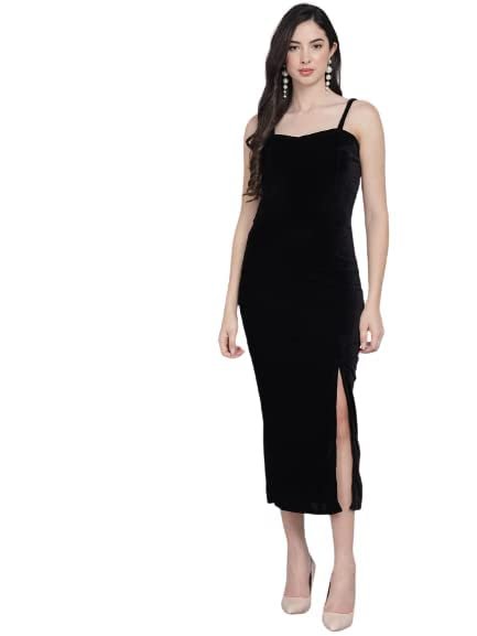 Women’s Velvet Bodycon Maxi Party Dress(Black)