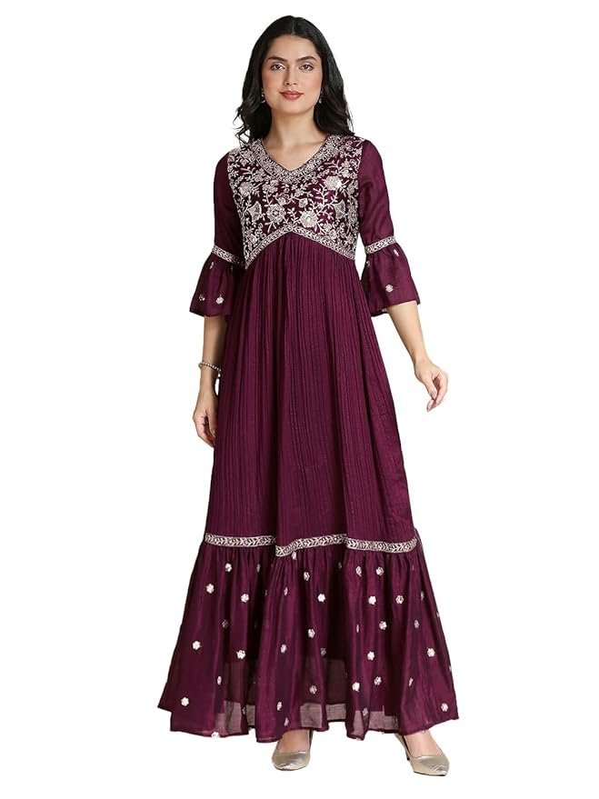 Be the first to review “Women’s Vichitra Silk Crus Traditional Ethnic Long Gown with Sequence Embroidery Work Long Kurta(Maroon)”